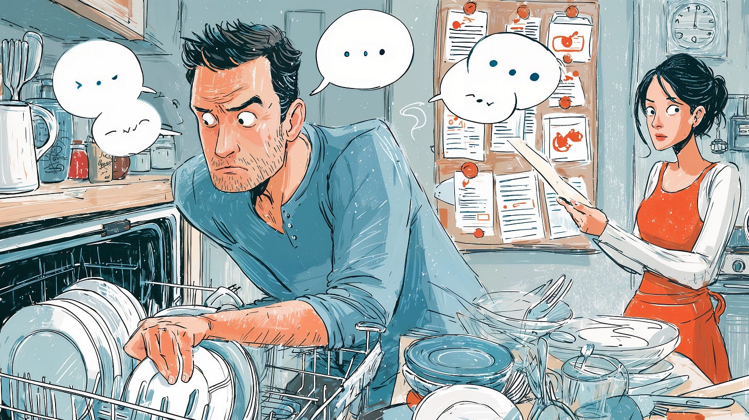 在一些深度訪談裡,有人的先生會故意把洗衣折錯、把洗碗機放亂、甚至衣服不該烘的亂烘,讓另一半下次不敢再交給他做,最後自己接手。